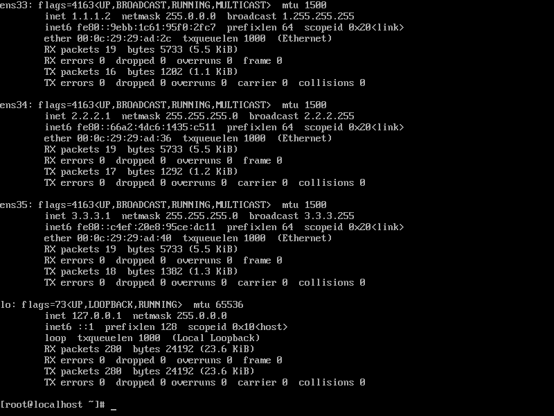 [root@firewall ~]# vi /etc/sysconfig/network-script/ifcfg-ens[33~35] // 33에서 35까지