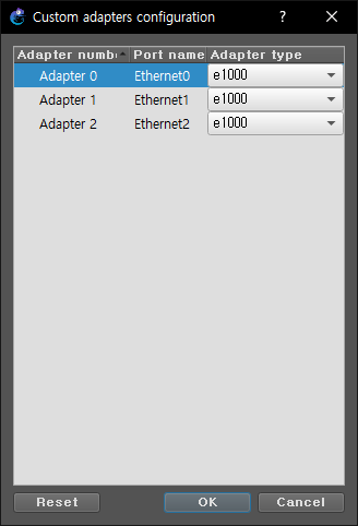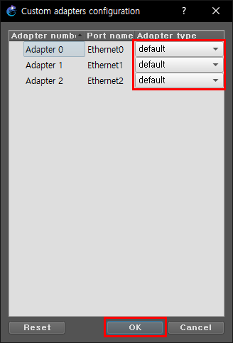 그럼 이렇게 늘린 NIC까지 합해서 3개의 NIC가 있는데 여기서 Adapter type을 오른쪽과 같이 default로 바꿔줍니다.