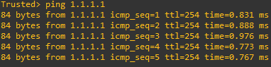 Trusted> ip 3.3.3.2/24 3.3.3.1 // IP : 3.3.3.3 Prefix : 24 gateway : 3.3.3.1